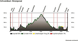Ausgangspunkt der nicht all zu langen aber interessanten Strecke ist ebenfalls wieder der Parkplatz im Ortsteil Solla der Stadt Freyung. Hier erfolgt der erste Anstieg nach Schönbrunn, von hier aus hat man schon den ersten schönen Ausblick auf die Region Bayerwald. Der weitere Streckenverlauf nach Oberseilberg führt durch sehr hügelige Landschaft. Die Abfahrten auf den Schotterstrecken erfordern ein bisschen Fahrkönnen, das man aber durch die Verminderung der Geschwindigkeit auch ausgleichen kann. Hat man Oberseilberg erreicht, eröffnet sich der Graineter Kessel, wie auch der südliche Teil des Bayerwald auch genannt wird. Die nächsten 2 km sind der schwierigste Teil der Strecke, denn hier sind 120 Höhenmeter zu überwinden. Hat man die 2 km bewältigt, kann man an der Schwendreuter Kapelle eine kleine Rast einlegen. Nun erfolgt die Abfahrt nach Herzogsreut. Auf asphaltierter Straße geht es bergab nach Sonndorf. Nachdem Sie Vorderschmiding erreicht haben, geht es ca. 3 Kilometer auf einem Waldwerg nach Freyung. Nun haben Sie den letzten kleinen Anstieg von der Stadtmitte zum Ortsteil Solla und somit das Etappenziel erreicht.