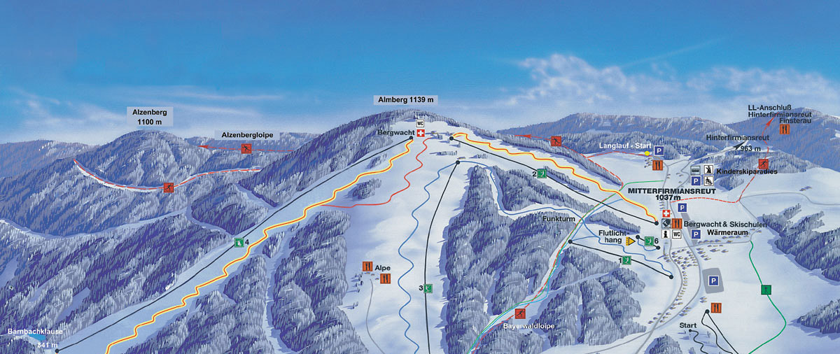 Philippsreut mit dem Skizentrum Mitterdorf/Mitterfirmiansreut Bayerischer Wald und seinen Ortsteilen ist zu jeder Jahreszeit, aber besonders im Winter ein lohnendes Urlaubsziel. Das alpine Skigebiet rund um den Almberg (1139 m) bietet Skifahrern und Snowboardern fünf moderne Doppelschlepplifte und eine Sesselbahn mit einer Gesamtförderleistung von 7000 Personen pro Stunde sowie maschinell gut gepflegte Pisten. Ob für Anfänger oder Rennläufer, für Familien oder Senioren - Übungshänge und Abfahrten gibt es für jeden.